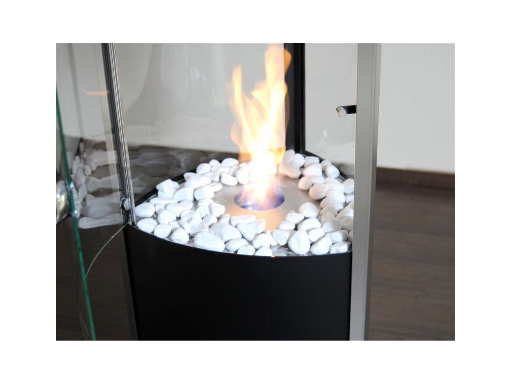 Volně stojící elegantní biokrb z lakovaného ocelového plechu a horní deskou z přírodního kamene. 3 velká skla poskytují neomezený pohled na bio oheň. Volně stojící elegantní biokrb z lakovaného ocelového plechu a horní deskou z přírodního kamene. Nádoba na biolíh je obložena mramorovými kameny. Technické parametry: Materiál: černá lakovaná ocel + nerez Provedení dvířek: sklo Šíře: 51 cm Hloubka: 52 cm Výška: 105 cm